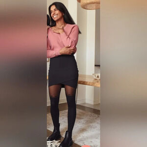 Sz M From Rachel Black Faux Wrap Mini Skirt