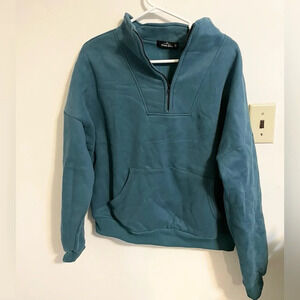 Sz M Trendy Queen Sweatshirts Half Zip Pullover Quarter Zip oversized bluegreen