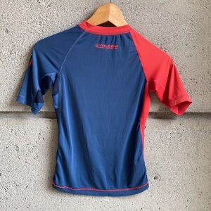 This is a heavily used Rashguard used by my son for many a beach day & surf trip. He wore it from age 9 and up. It has snags, marks and crackling on the graphic but still has life left for another kiddo to get use out of it. Marked low in the hopes of connecting someone with it and keeping it out of the landfill. 🤙🏼🌎
