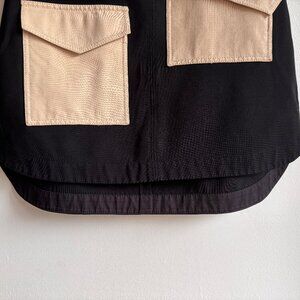 Black asymmetric Tibi jersey skirt with large contrast cream front pockets and back hem longer than the front. Fun, comfortable and distinctive!