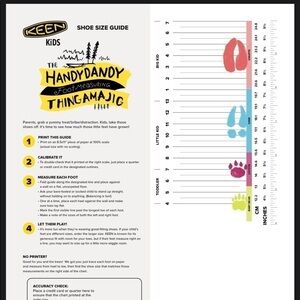 Keen waterproof sandals in EUC. Black and gold. Parachute and Velcro closure. No size is visible but approximate exterior measurement is 8”, approx 7-71/2” inside dimension so I am guessing little kid size 13/ big kid size 1. Size chart added