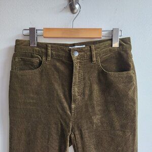 EUC, army green, natural, work, office, school, college, university, weekend, outdoor, hiking, camping, cabin, cozy, warm, comfortable, comfy, soft, textured, fitted, figure-cottage, trendy, timeless, fall, autumn, transitional, cord, ribbed, slim, high-rise, trousers, bottoms, slacks, jeans, everyday, professional, smart casual, layering, wardrobe staple, neutral, earth tone, muted, relaxed, effortless, functional, practical, durable, quality, breathable, structured, tailored, feminine, flattering, slimming, comfortable fit, velvet-like, velvety, velour, basics, basic, ann taylor, cottage, cottagecore, low-maintenance, easy care