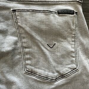 EC Hudson faded grey Harkin Super Skinny cuffed Crop Denim. Approximate measurements laying flat waist 14.5”, Rise 9”, Inseam 25”. Cuff is tacked in place. The first image is for inspiration only, the listed item is featured in the remaining images.