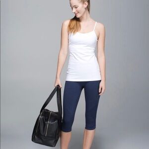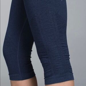 Sz4 Lululemon crops. Deep navy colour in EUC. Four way stretch fabric ideal for yoga or training. Seamless and with venting to encourage airflow. No dig waistband. 16 1/2” inseam. Size verified inner cuff and shown in picture. Seams are generally great, slight pilling in crotch. Shown in picture