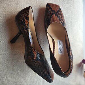 Authentic, brand new snake-print heels from the luxury brand Jimmy Choo, crafted from premium cuoio leather. Brand new, never worn. No box or dust bag included.