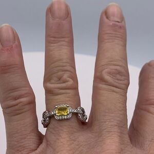 Sz 7 ring, no tags, solid 925 silver, yellow & white diamonds, chain link design