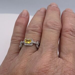 New item without tags. Size 7 solid sterling silver ring in chain link design that goes all the way round, studded with full cut white czs with a single yellow central gem. All gems are lab created with all the characteristics, colour and sparkle of mined stones, just without the exorbitant price tag. Not too big to wear every day, but still dramatic enough to wear with evening attire. Best of all worlds! Available in emerald green too. Try both together, add some complimenting pieces from Our Closet (some suggestions shown all priced separately). Perfect to wear with all your stackable neck chains and rings. Complementing pieces available in Our Closet so check it out because this is how we get Fresh at Lemon Squeezy Shop🍋