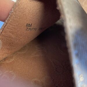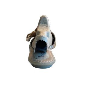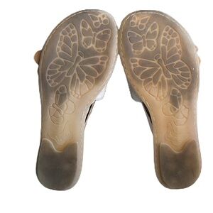 EC Sz 8 boc flat sandals, linen feel lined fabric strap with a flower of the same material. Padded insole. Super cute and ready to re home. Normal dust on uppers and sole consistent with normal usage. Approximate measurement length outer sole 10.25”