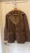 Gorgeous Brown Leather Blazer Style Barn/car Coat with Faux Fur plush lining. Antiqued, Distressed leather look. 3 Button styling, 2 faux fur lined front pockets, button closure at arm hem. Very detailed seaming throughout. Faux Fur Trim on hems. Approximate measurements laying flat pit to pit 20”, length from shoulder 27.5”, arm length from shoulder seam 20”. This coat is in EUC, only minor wear typical of use. Professional dry clean only is recommended. Buttons could use a quick tightening as they have loosened with time.