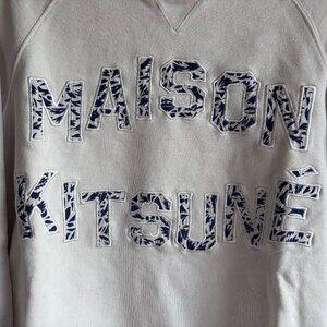 SzS - Maison Kitsuné Graphic Navy Letter Print Soft White Sweatshirt