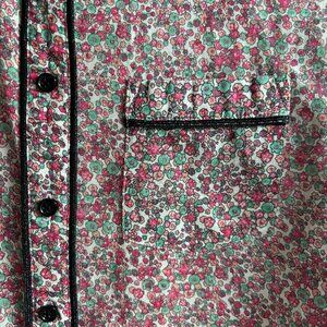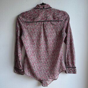 Lightweight sheer cotton button-up shirt featuring a print from Liberty, known for its refined fabrics. Edgy black piping gives these delicate florals a fun western twist!