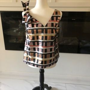 Metallic threads in the mixed tile design in a rich cognac colour.