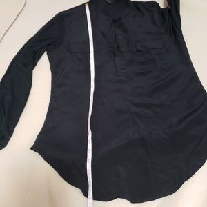 T. Babaton silk and jersey black blouse by Aritzia in size small. Regular fit. Roll tab sleeves. 100% silk front and collar and jersey sleeves and back. Rounded hem and button sleeves.