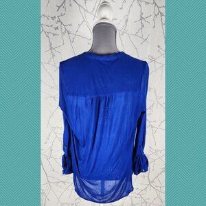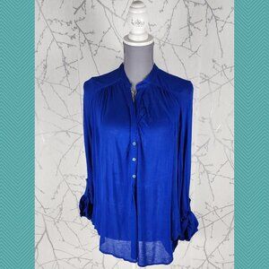 T. Babaton Royal Blue Sheer Flowy Button Front Blouse