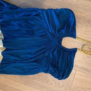 Lovely, flowy, T-Bags Los Angeles halter maxidress. Please note that it is not a stain on the front, just the lighting… truly a great sundress and great halter neckline with rope tie.