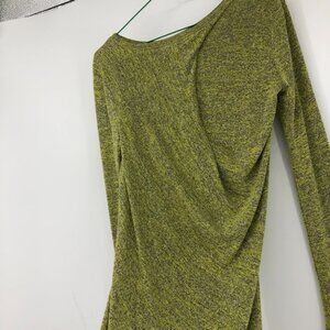 T By Alexander Wang marled yellow LS bodycon mini dress drape twist back