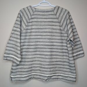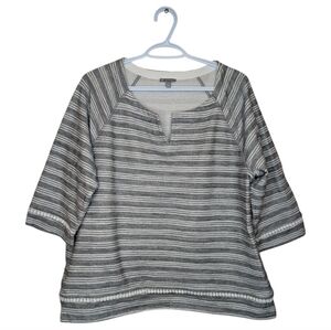 T By Talbot's Striped Cotton Blend Towel 3/4 Sleeve Striped Grey White Top XLP