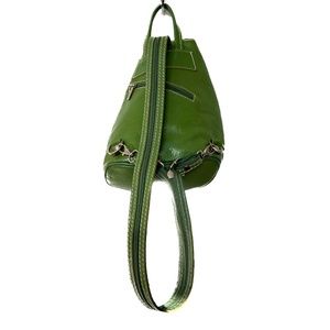 T Nobile Leather Backpack Shoulder Bag Green Split Strap Folded Front Toggle