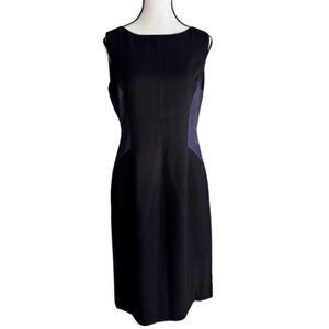 THIS DRESS IS SO STUNNING! IT HAS A NICE COMBINATION OF FABRICS AND COLORS. CAN BE WORN WITH OR WITHOUT A THIN BELT. FULLY LINED - THE TOP IS LINED IN ROYAL BLUE GORGEOUS LINING AND THE BOTTOM - IN BLACK LINING.