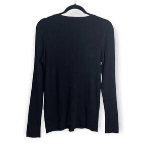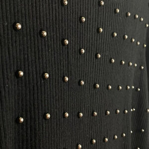T Tahari Black Ribbed Long Sleeve Top with Silver Beads