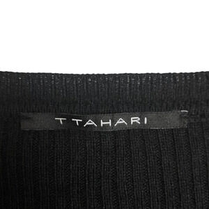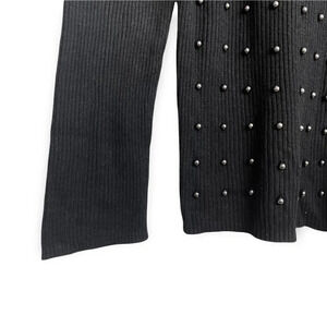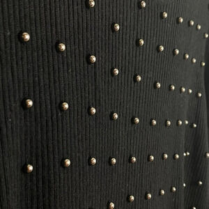 T Tahari Black Ribbed Long Sleeve Top with Silver Beads