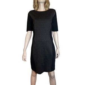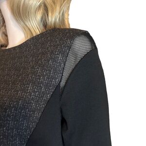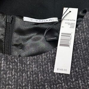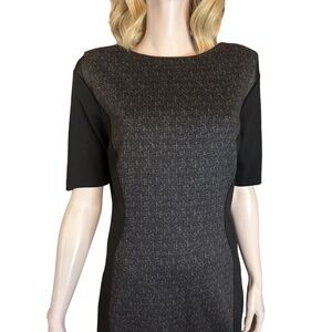 T Tahari Dilana Dress Rayon Blend Sheath Scuba Ashen Mesh Inserts Stretch Lined