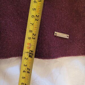 Soft, feminine sweater in a beautiful merlot grape/Burgundy shade. Soft (feels like cashmere) and flattering to your silhouette. Dress it up or down. Crew neck and short sleeve, with a subtle peblum bottom.