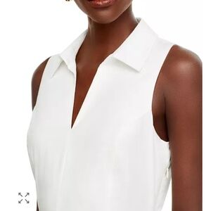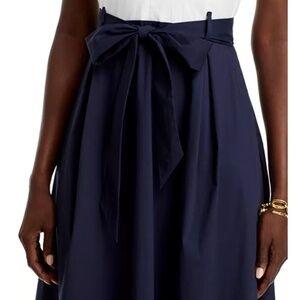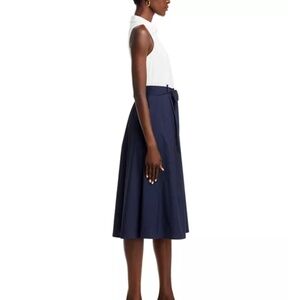 T Tahari Size 2 Tie Waist White- Navy Office Fit & Flare Dress Cotton New