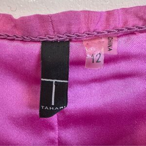 T Tahari Purple Silk, Cotton Blend Empire Waist Braided Strap Sleeveless Dress