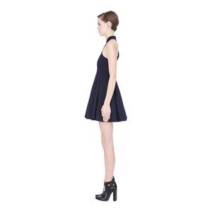 T by Alexander Wang Navy Zip Front Scuba Neoprene Box Pleated Skater Dress Size Medium