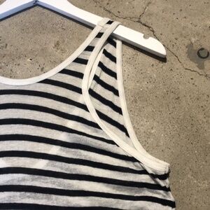 This tank from T by Alexander Wang is made with a lightweight semi-sheer linen-blend slub in white and black stripes, and features a relaxed fit, a low crewneck with a dip back, and white rib binding.