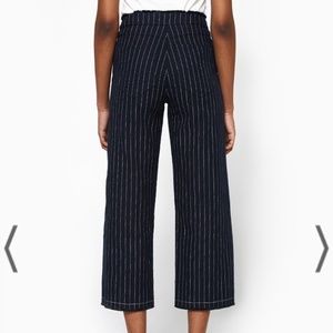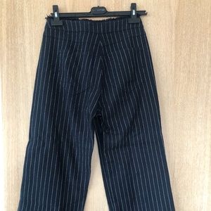 T by Alexander Wang burlap pinstripe cropped pants. Size 2, fits true to size. 100% cotton. Flattering high rise waist, cropped hem with frayed edges. Zip fly with hook and bar closure. Excellent condition.