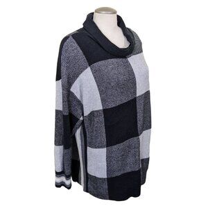 T by Talbots Cowl Neck Sweater Womens XL Black Buffalo Plaid Long Sleeve Tunic