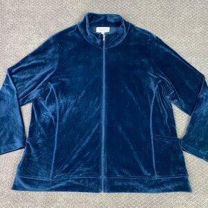 T by Talbots Velour Jacket Women's 2X Blue Luxe Track Sweat Gym Full Zip Stretch