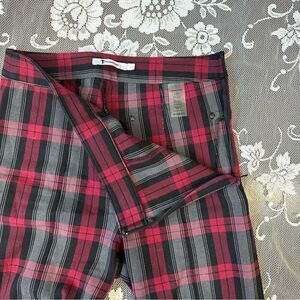 T by Alexander Wang Fitted Stretch Plaid Leggings with Zippers Sz 2