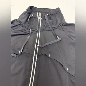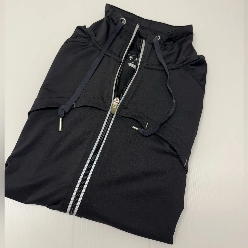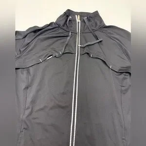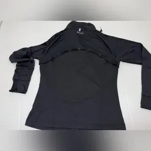 Sleek black full-zip jacket. Features comfortable fit and classic design.