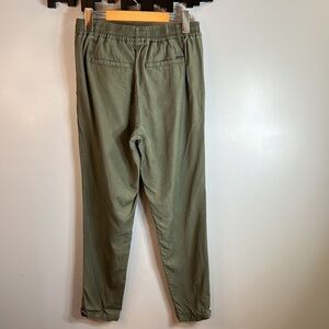 Tabari Olive Green Jogger Pull-On Button Cuffs Size Medium. In good condition, no size or care tags. Lightweight casual pants.