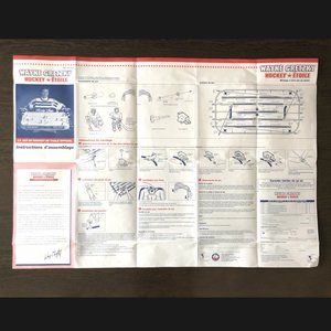 VINTAGE, THE OFFICIAL TABLE TOP HOCKEY GAME, WAYNE GRETSKY'S 99, ALL-STAR HOCKEY, WITH PRINTED AUTOGRAPH, 2 TEAMS (12 PLAYERS), 2 NETS, 1 PUCK, 6 LEGS/PEGS, ASSEMBLY INSTRUCTIONS, 19"W X 6.5"H X 36"D, ONE OWNER ONLY 80'S/90'S, THERE IS SOME YELLOWING ON ONE SIDE, VERY GOOD CONDITION.