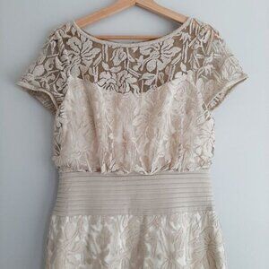 TADASHI SHOJI Embroidered Lace Cap Sleeve Blouson Knee Length Cream Dress Sz 6