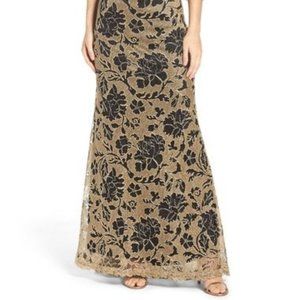 TADASHI SHOJI GOLD BLACK Embroidered Lace Evening Gown Dress! Size 2!