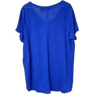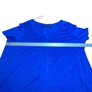TAHARI 100% Linen Stretch Knit Short Sleeve Cobalt V-Neck Tee Hi-Lo Hem US Sz 1X