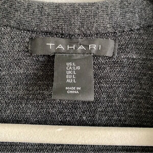 TAHARI Extra Fine Merino Wool Dark Gray Open Cardigan Size L