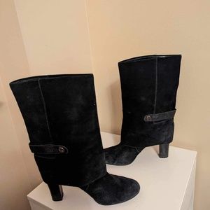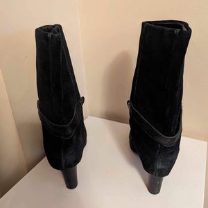 Black Suede size 10 leather upper boot. Fit closer to a size 9. 9/10 condition - Scuff on heel as seen in picture otherwise great condition.