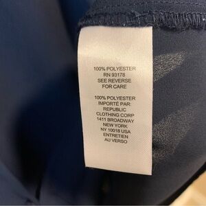 TAHARI Navy Ruffle Trim Button Front 100% Polyester Blouse