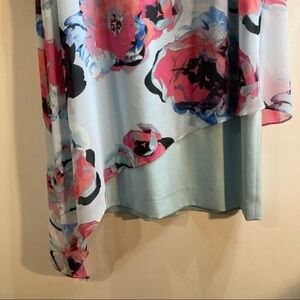 TAHARI Sz 14 Handkerchief Overlay Bold Pastel Floral Zipper in Back Dress