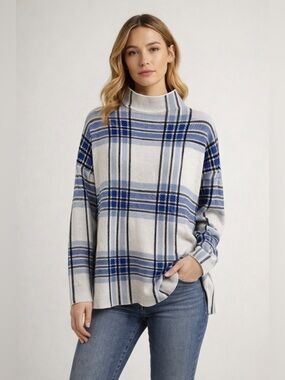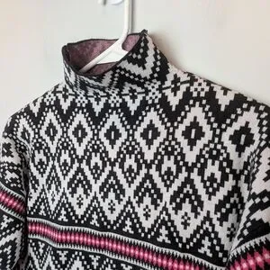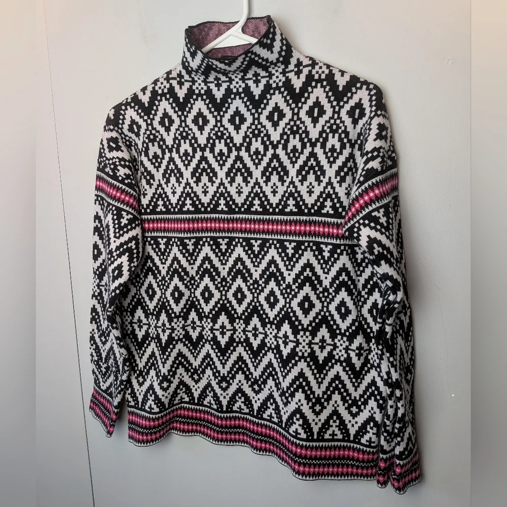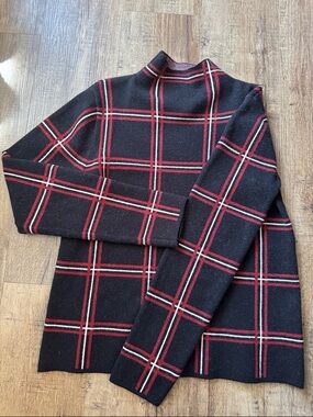 TAHARI Women Sweater Turtleneck Long Sleeve Super Soft Size Medium Black White