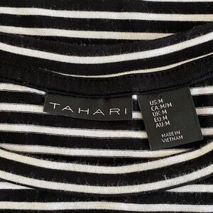 TAHARI size M black and white stripe sleeveless top with shear bottom