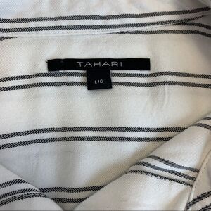 TAHARI white black pinstripe button-down long sleeve shirt size large