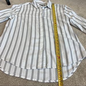 Tahari white black pinstripe button-down long sleeve shirt size large