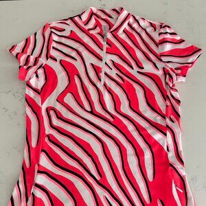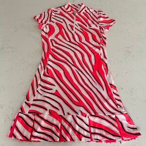 TAIL Activewear Short Slv 1/4 Zip Zebra Print Colorful Polyester Spandex Golf Dress in Pink White Black Coral NWOT